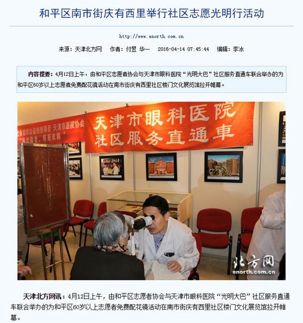 2016年4月14日北方网-和平区南市街庆有西里举行社区志愿光明行活动