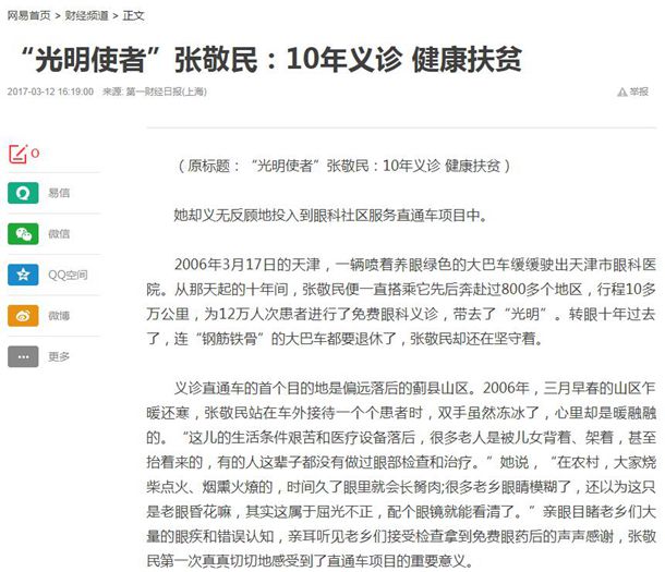 2017年3月12日第一财经日报报道- “光明使者”张敬民:10年义诊 健康扶贫