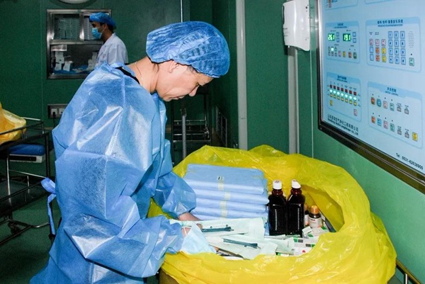 在与援疆前方指挥部会合后医疗队随即兵分两路,斜视组赴和田地区人民医院,白内障组继续驱车4小时前往于田县。医疗队到达于田县人民医院已是晚上8点多了,但看到医院走廊里排满早已等待的患者,队员们来不及休整即刻投入到手术前的各项准备工作中。宋慧主任、田晓峰副主任为近110名初筛患者进行了术前检查,郭亚雯主任带领李华医生、主管护士贾金荣以及随行工程师,从手术间的布局、设备调试、耗材准备、消毒处理等各个环节并行有序地展开,待将全部准备工作安排停当,已近子夜。