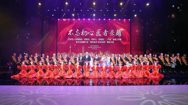 12月18日,天津市卫生健康委联合市文明办、市总工会召开“不忘初心 医者荣耀”天津市人民满意的“好医生、好护士、好医院”“十佳”医务工作者暨卫生健康行业“岗位练兵、技术比武”表彰大会,对先进单位和个人进行表彰。