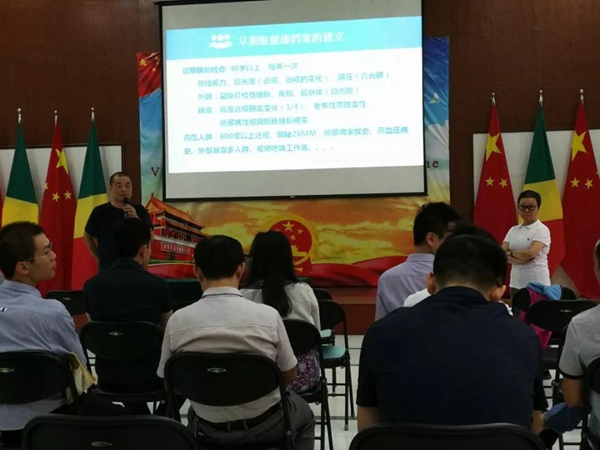 在出色完成手术任务,为非洲人民送去光明的同时,市眼科医院医疗队队员李丽华主任和韩泉洪主任,还应邀来到了中国驻刚果(布)大使馆,进行爱眼护眼健康讲座,普及爱眼护眼知识。同时,还为大使馆工作人员进行了眼部检查。