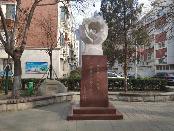 这座雕塑是朝阳里社区引以为豪的一大地标。2009年3月,朝阳里社区被国家民政部认定为“全国第一个社区志愿者组织发祥地”。(央视记者王晶磊拍摄)