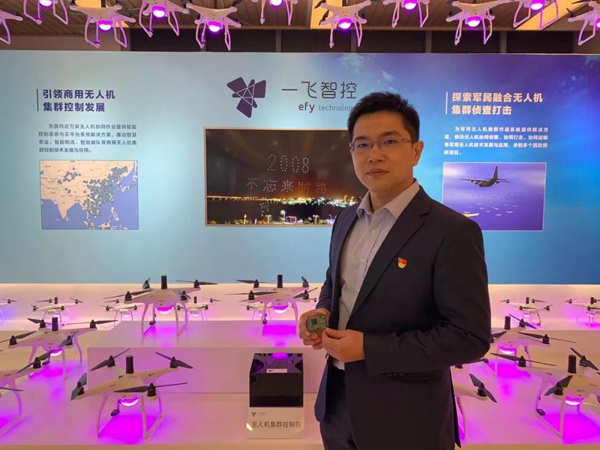 多无人机协同智能感知、规划、决策、信息交互与协同控制的无人机集群展示。(央视记者刘瑞琳拍摄)