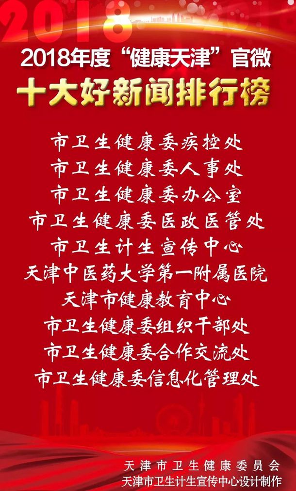 市卫生健康委党委书记、主任王建国、二级巡视员何鹏、市委网信办新闻移动处处长王晖出席活动并一同启动“健康天津”微信公众号改版上线。活动现场发布了2018年度天津市卫生健康行业微信公众平台影响力排行榜、2018年度“健康天津”官微十大好新闻排行榜、2018年度天津市卫生健康行业微信公众平台执行力排行榜三个榜单。