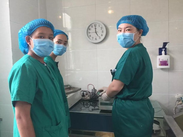 8月8日上午8点,白内障手术和胬肉手术在手术室同时开始。由于很多病人未得到及时医治,出现了白内障过熟、胬肉术后复发等疑难复杂情况,致使手术难度增大,手术时间大大延长。医疗队员们迎难而上,每台手术都精益求精,全天手术历时近13个小时。顺利完成当天最后一台手术时,时间已是晚上8点45分。