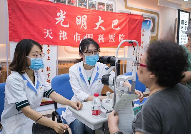 我院公益服务直通车自2006年组建以来,广泛深入贫困地区、企事业单位、建筑工地、学校、街道社区等开展眼病筛查、义诊、科普宣传等眼健康服务。至今,累计出车1076次,总行程14.6万多公里,为群众免费义诊检查14.8万余人次,免费修理清洗眼镜3.9万副,发放各类宣传材料达34万余份。团队先后荣获天津市和平区第四届“感动社区 感动和平”先进集体、工人先锋号、第二十三届志愿者先进团队、第二十四届志愿服务优秀团队、第二十五届社区志愿服务模范团队、“为天津革命老区建设做出重大贡献单位”、“天津市老区建设促进会先进集体”等荣誉称号。