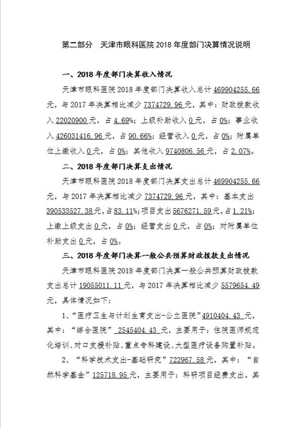 附件一:天津市眼科医院2018年度部门决算编制说明
