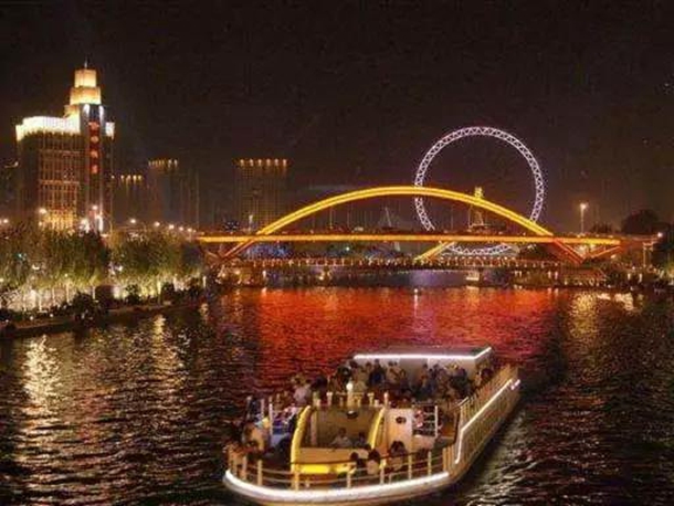 20时,网安号海河游船从古文化街码头启航,沿海河一路行进。与此同时,夜景灯光秀同步上演。