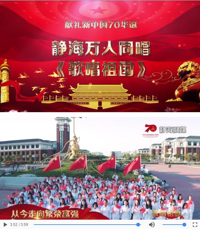 金秋时节,丹桂飘香。在静海区热烈庆祝中华人民共和国成立70周年之际,为进一步加强全区干部群众的理想信念教育、革命传统教育、形势政策教育、爱国主义教育,激励广大干部群众“不忘初心,牢记使命”,充分展示全区各行各业礼赞新中国、奋斗新时代的昂扬旋律。从城市到乡村,从机关到学校,从车间到田间,到处洋溢着歌唱祖国的热情。静海区文化旅游局,静海区融媒体中心联合录制MV《静海万人同唱〈歌唱祖国〉》,以展示静海儿女对祖国的情怀。来源:静海融媒