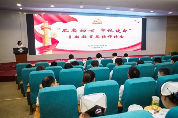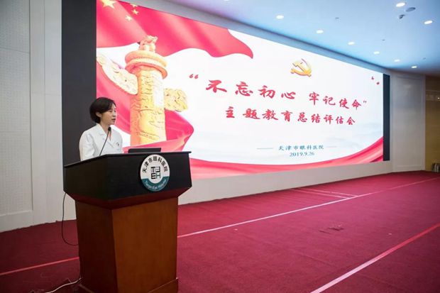 2019年9月26日下午,天津市眼科医院党委召开“不忘初心、牢记使命”主题教育总结评估会。市卫生健康委组织干部处刘娟同志出席会议并讲话。医院领导班子全体成员、党支部书记、中层干部和基层党员代表共50余人参加会议,会议由院党委书记吴璠同志主持。