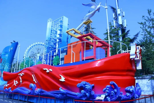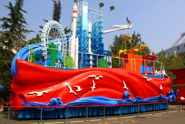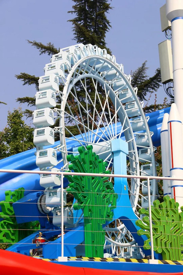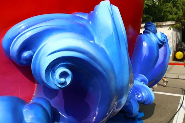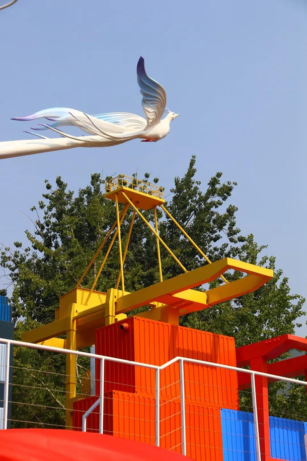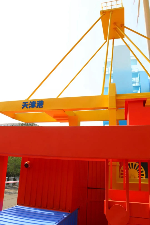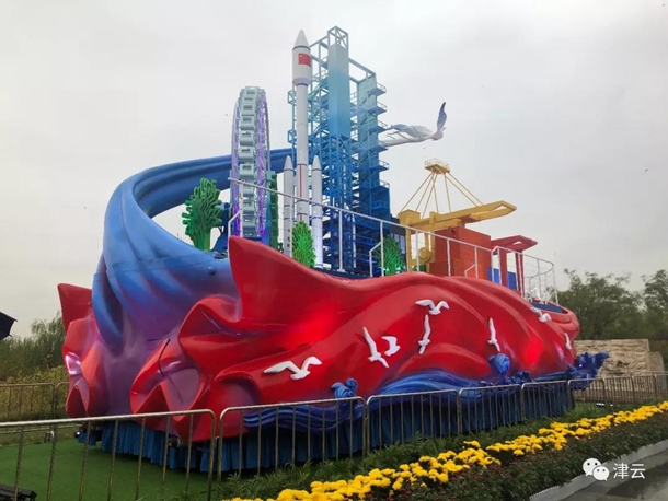 红色的天津港龙门吊、蓝色的浪花、白色的天津之眼摩天轮、绿色的生态之树……什么?你说色彩有点多?不不不,看起来非常舒服,特别是梁臂,浪花等细节部分,采用了渐变色的设计,显得非常灵动。当然,记者也不是很懂美术,对于“色号”也说不出什么道理来,总之,天津彩车给人的感觉就是“清爽”。
