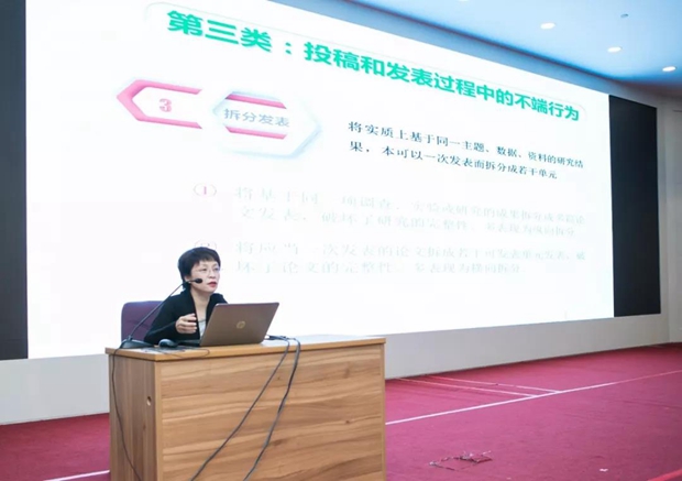 在讲座的第二部分,黄翊彬主任为大家讲解了如何防范学术不端的若干问题。她表示,近年来,我国科技事业取得了长足的发展,在学术期刊发表论文数量大幅增长,质量显著提升。但在取得成绩的同时,也暴露出一些学术不端的相关问题。为弘扬科学精神,加强科学道德和学风建设,抵制学术不端行为,国家多部门共同研究制定了《发表学术论文“五不准”》。