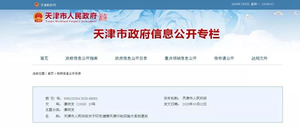 2020年,致力推进“健康天津行动”