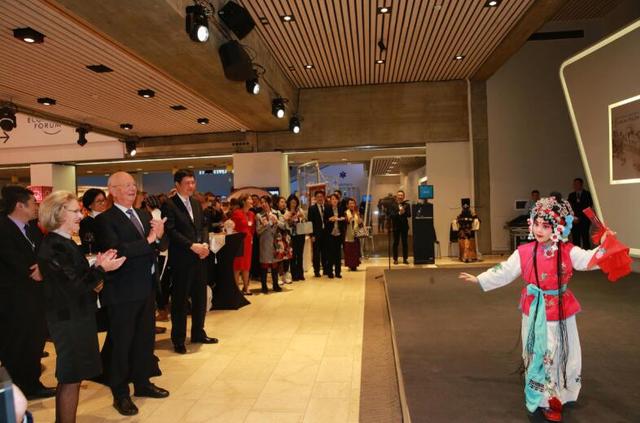 1月22日,在瑞士达沃斯世界经济论坛现场,嘉宾观看演出。