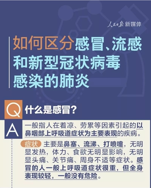有用!如何区分感冒流感和新型冠状病毒感染的肺炎?