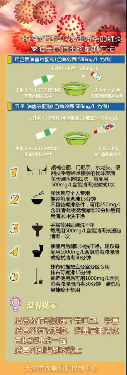 健康知识丨防控新冠肺炎的家庭日常消毒药配制方法