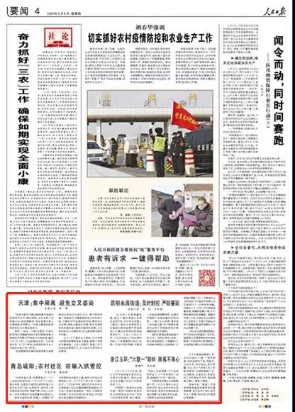 《人民日报》报道天津抗疫工作经验:集中隔离,避免交叉感染