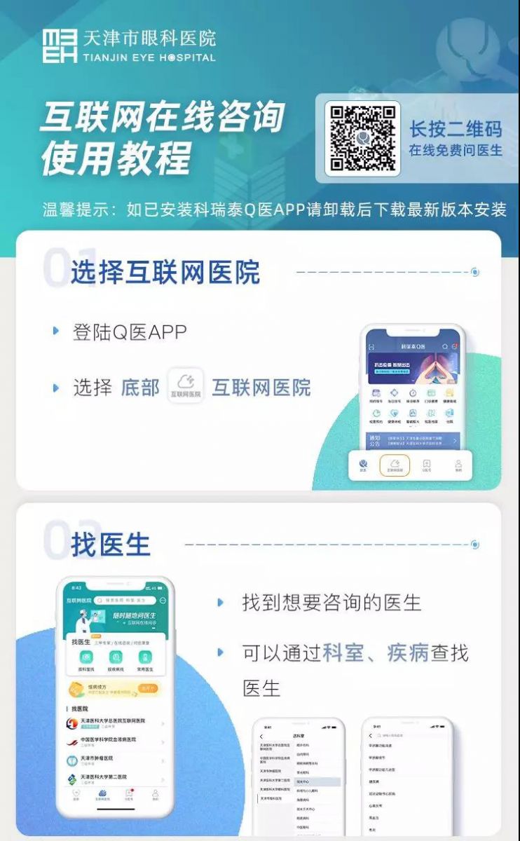 目前,天津市眼科医院已开通11个专业的在线咨询,眼科慢性病、常见病患者,近期不方便来院就诊患者,均可通过在线咨询,获取专业诊疗建议。