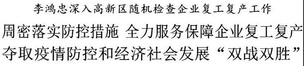高新区负责同志汇报了各项惠企措施:既下发政策文件,又送上“现金支票”,专门筹集了1亿元扶持资金,积极为区内复工企业提供防控工作方面的支持,切实减轻企业落实防疫措施的开支。针对三安光电集体宿舍员工较密集的问题,专门联系协调酒店提供住宿,帮助企业渡过难关。李鸿忠强调,各级各部门要坚持统筹兼顾,扎实推进疫情防控和经济社会发展,切实做到“两战”并重,努力实现“双胜双赢”。要把维护人民群众生命安全和身体健康放在第一位,建立最严格的责任制,指导督导企业落实主体责任,严格周密、稳妥有序做好疫情防控工作,坚决阻断病毒传播渠道,防止企业发生聚集性风险。同时要扑下身子为企业服务,践行“产业第一、企业家老大”理念,加强政策举措宣传解读,落细落实各项援企稳岗政策,想企业之所想,急企业之所急,为企业提供有效管用的服务举措,努力降低疫情对企业的影响,全力实现经济社会发展年度目标任务。