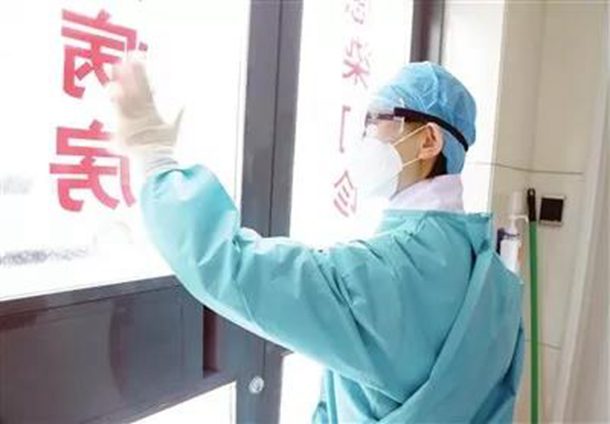 医护人员进行病房消毒图片由北辰医院提供