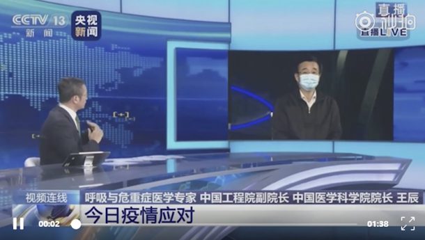 网信天津:在19日的央视《新闻1+1》节目中,白岩松连线中国工程院副院长、呼吸与危重症医学专家王辰。