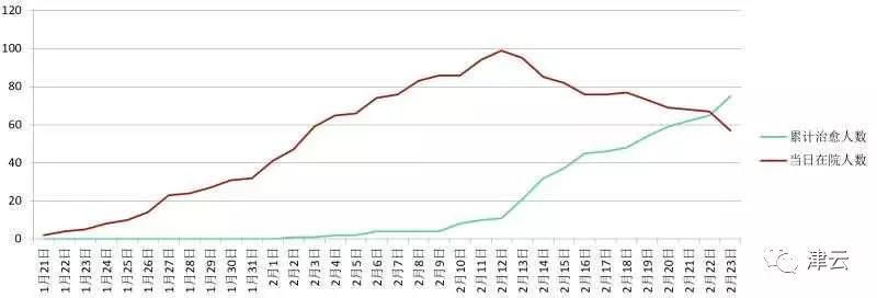 此前一日,天津市累计治愈出院65人,在住院中67人。自此,天津市累计治愈出院人数达到75人,在住院中57人。自新冠肺炎疫情发生以来,天津市累计治愈出院人数首次超过住院人数。