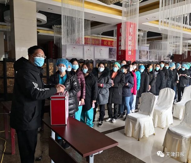 天津援助湖北第二批医疗队,于1月28日从天津出发奔赴武汉。该医疗队共有138人,含领队3人,医生40人,护士95人。队员们来自天津16家医疗机构,包括重症医学、呼吸、感染性疾病、医院感染管理等专业医务人员。