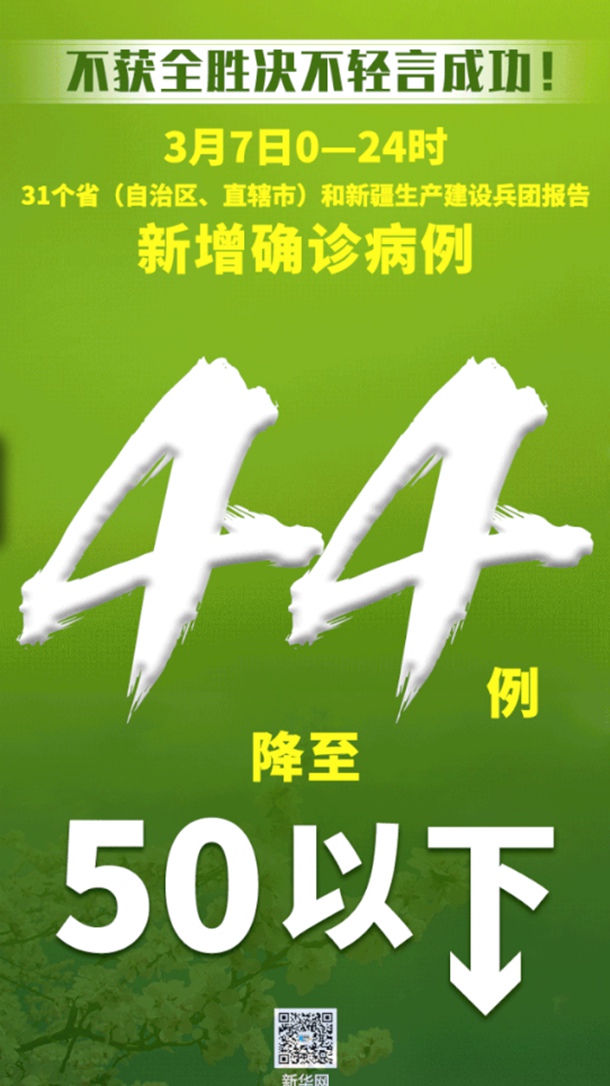 3月7日0—24时,31个省(自治区、直辖市)和新疆生产建设兵团报告新增确诊病例44例,新增死亡病例27例(湖北27例),新增疑似病例84例。