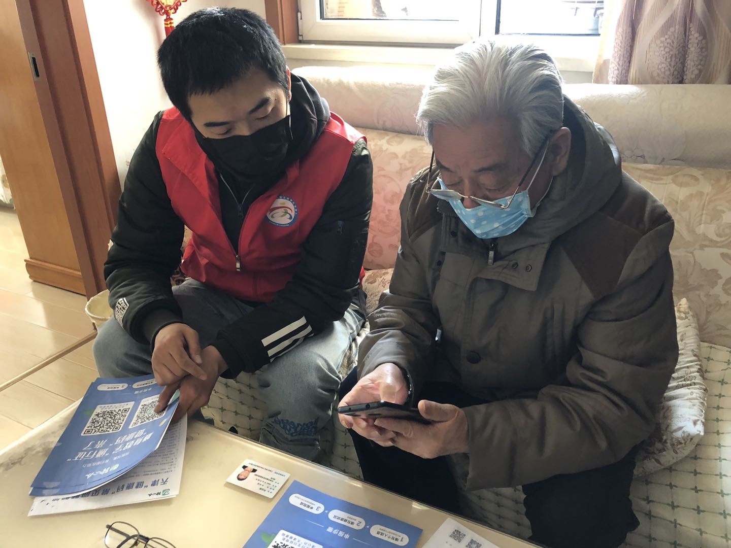 区应急局下派干部陈潇涵来到居民家中助其申领“健康码”