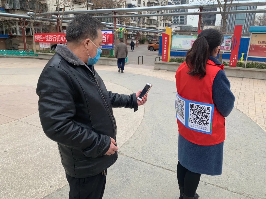 大沽街河南里社区工作人员将申领二维码贴在马甲上
