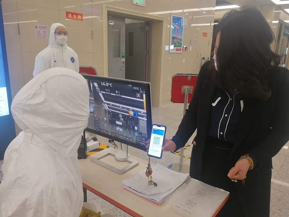 安检人员告诉记者,“健康码”查验已经实行多日,无论是车站工作人员、进入环球购购物人员,还是进站购票或乘车人员,全都需要扫“码”、亮“码”,“绿码”可以直接进入,如果遇到“橙码”或“红码”将上报给车站相关工作人员进一步处置,使用非智能手机的人员不能扫码则做登记处理。