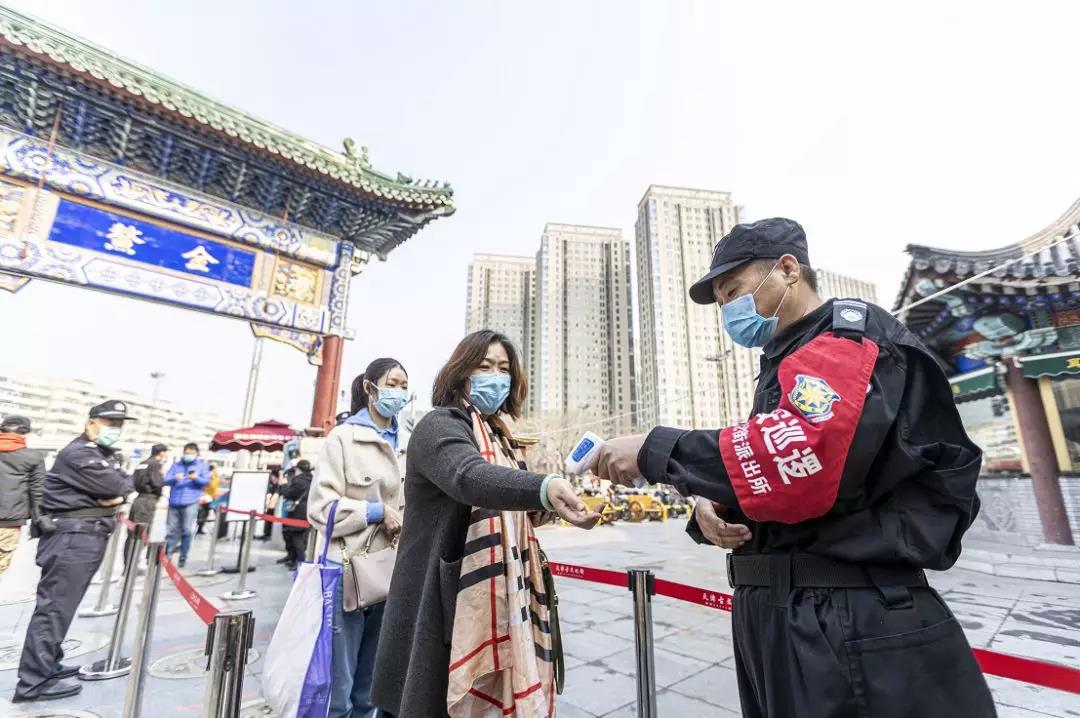 清晨一场短暂的春雨过后,空气变得温润起来,丝丝暖意令人神清气爽。3月25日,是古文化街旅游区恢复开放的第一天,距离开放还有10分钟,记者在古文化街北口看到,已有30余名游客戴着口罩,有序站在排队间隔线上,等待9点开放的那一刻。