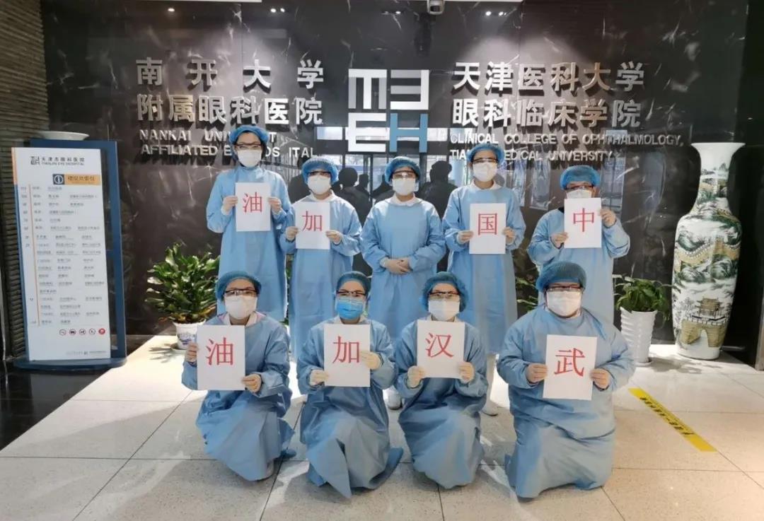 疫情早期,预检分诊人员为中国加油,为武汉加油