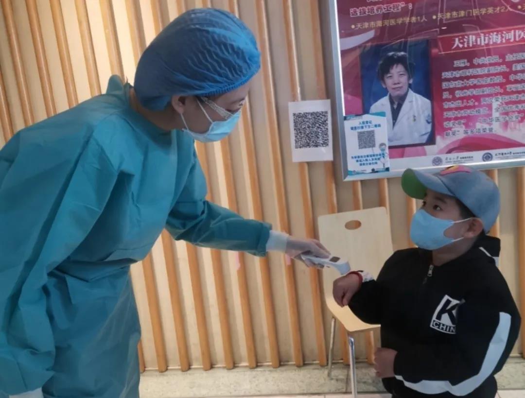 温情瞬间:一名可爱的小朋友主动配合测量体温
