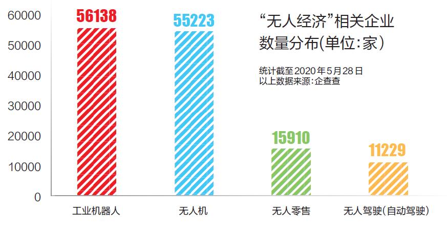 在疫情助推下,无人经济已不再是星星之火,而是渐呈燎原之势。据企查查数据,目前我国无人机相关的在业、存续企业数量达5.5万,工业机器人相关的在业、存续企业数量达5.6万,无人零售相关的在业、存续企业数量1.6万,无人驾驶相关的在业、存续企业不下1.1万家……