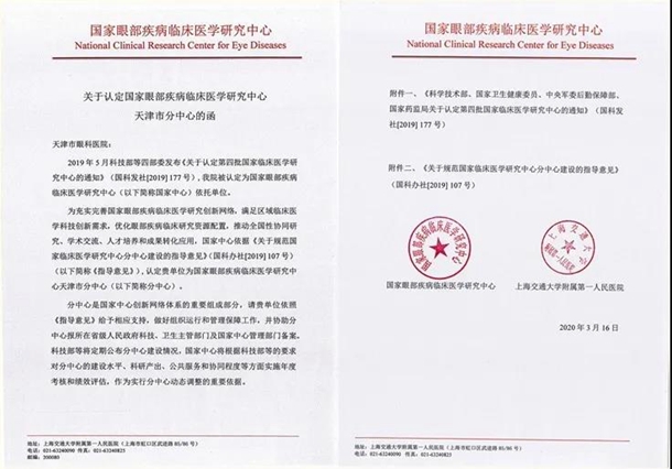 我院被认定为国家眼部疾病临床医学研究中心天津市分中心