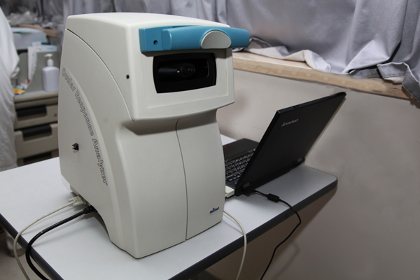 【名称】:眼反应分析仪 【功能】:采用动态双向压平原理。(1)评价角膜生物力学性能:生物力学指标分别为角膜粘滞阻力(CH)和角膜阻力因子(CRF)(2)同时可测量眼压:眼压参数分别为Goldmann眼压值(IOPg)和角膜补偿眼压(IOPcc)。IOPcc是根据角膜粘滞阻力(CH)校正后的眼压值, 【适应症】:可用于角膜屈光手术术前筛查,监测患者术后眼压情况及生物力学性能变化特点。