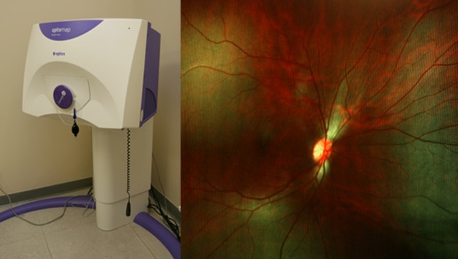 【功能】532纳米绿色激光, 用于观察视网膜结构,主要显示视网膜前九层与色素上皮细胞组织结构。633纳米红色激光, 用于观察脉络膜情况。主要显示色素上 皮细胞到脉络膜之间组织结构。 200度的成像角度可以记录普通照相机与眼底镜不能观察到的周边情况。