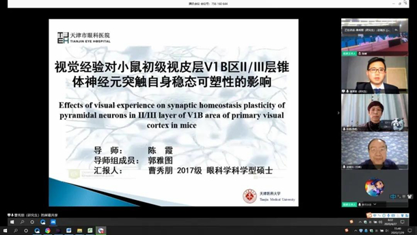 天津医科大学硕士研究生曹秀朋同学正在进行毕业论文网上预答辩汇报