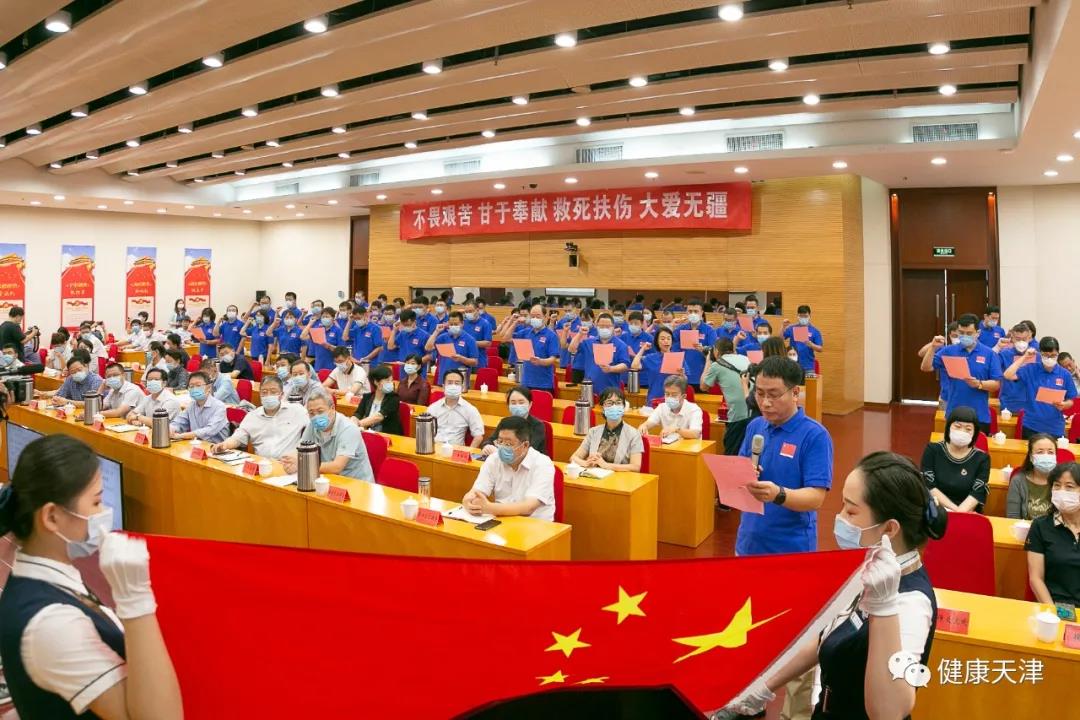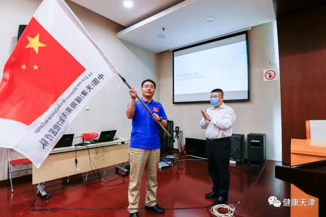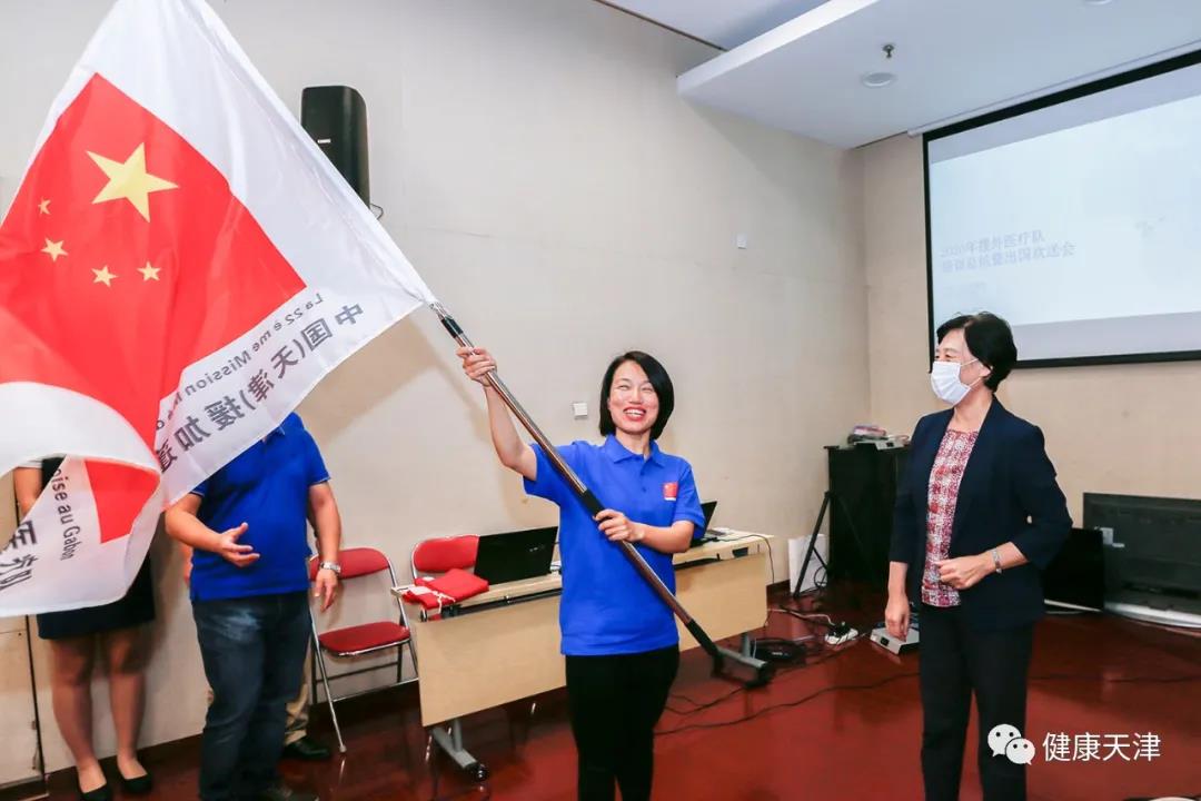 会上,与会领导们向即将出征的两批医疗队队员颁发了培训结业证书,张富霞副主任、赵剑岭副主任向两位队长庄严递交援外医疗队队旗,全体队员宣读了援外医疗队员誓词。