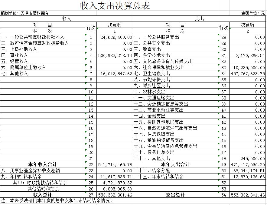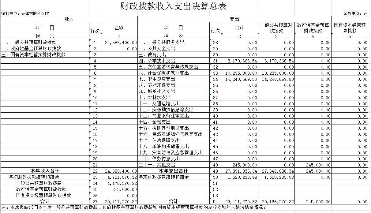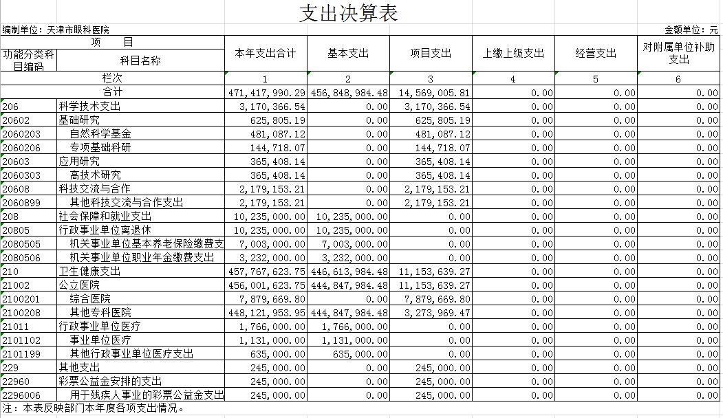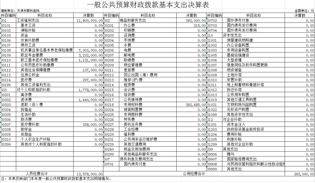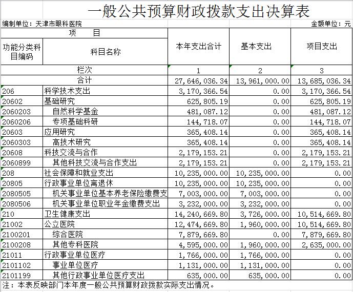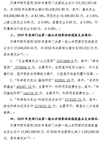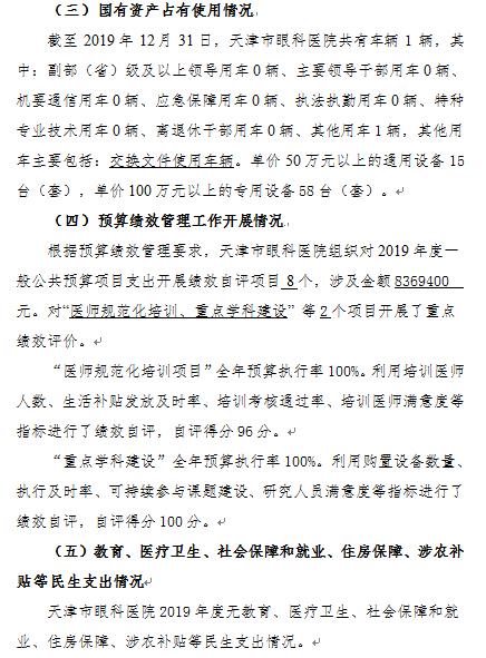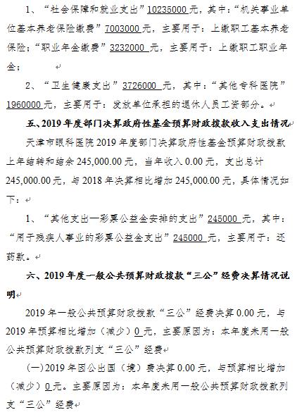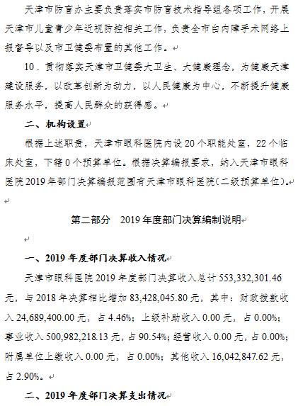 天津市眼科医院2019年度部门决算和三公经费决算编制说明