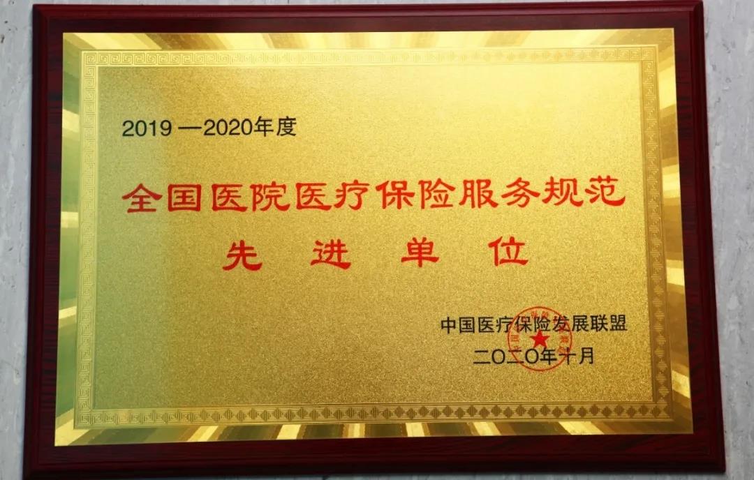 我院获评2019-2020年度“全国医院医疗保险服务规范先进单位”