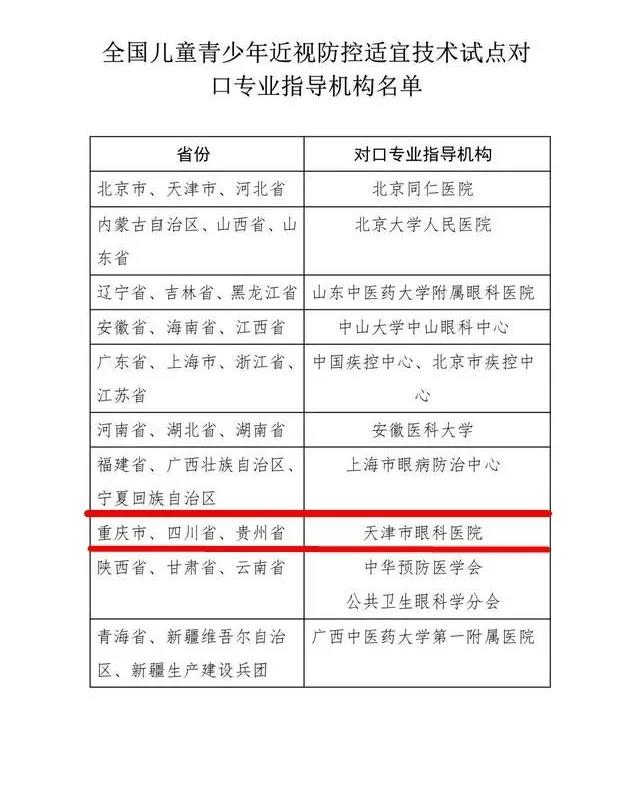 天津市眼科医院作为天津市青少年近视防控中心挂靠单位,获批全国儿童青少年近视防控适宜技术试点对口专业指导机构资格。试点期间,医院负责指导重庆市、四川省和贵州省三省市18个试点区县的近视防控现场专业技术指导和效果评估工作。