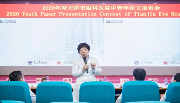 最后,主管院长王雁代表院党委进行总结发言。她指出,天津市眼科医院中青年论文报告会自2008年首次举办至今已十余届,为中青年医务人员搭建了展示年度学术成果的优秀平台。我们欣慰的看到青年人的成长进步,也有很多年轻医务人员成长为自己专业的骨干,同时也希望更多的年轻人能够参与进来,为共同提高我院的科研临床水平贡献自己的力量。