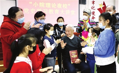 “大家有没有关注前几天的全国脱贫攻坚总结表彰大会?习近平总书记在会上庄严宣告,我国脱贫攻坚战取得了全面胜利。非常振奋人心、令人鼓舞!”昨天,在红桥区咸阳北路街道凤城社区“小院理论夜校”党史学习教育专题讲堂上,77岁的老党员李嘉溪饱含激情地分享着自己聆听习近平总书记在全国脱贫攻坚总结表彰大会上重要讲话的体会。