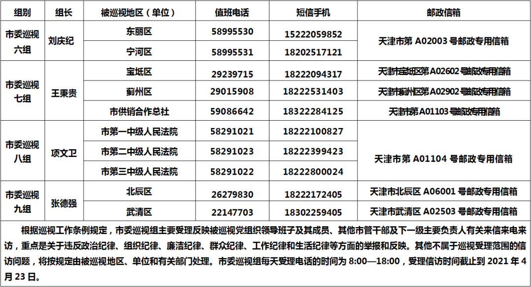 天津日报讯(记者 徐丽)根据市委统一部署,截至3月3日,承担十一届市委第九轮巡视任务的9个市委巡视组全部完成进驻,将对滨海新区等16个区和市高级人民法院、市供销合作总社等6家单位党组织,开展为期2个月的常规巡视。