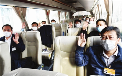 3月3日下午,出席十三届全国人大四次会议的天津代表团代表集体搭乘大巴,满怀豪情与期待开赴首都北京。