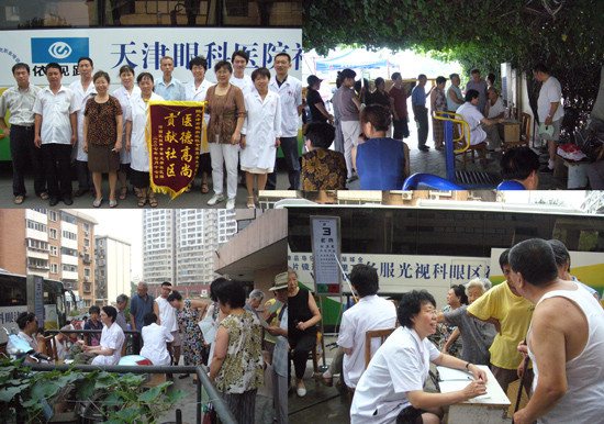 2007年7月17日龙都社区的居民争先恐后参加义诊并赠送锦旗