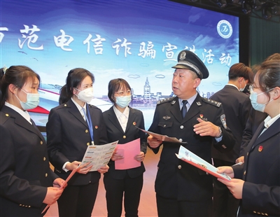 昨天,公安河北分局建昌道派出所民警,走进天津铁道职业技术学院,开展防范电信诈骗宣传活动。