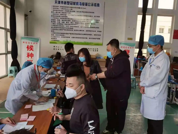 在我院医疗队队长张钊的引导下,洪副院长一行分别对疫苗接种情况、急救药品的准备、抢救设备、医务人员急救能力、安全注射等方面进行了检查。随后又查看了场地安排、接种流程、疫苗管理、医疗保障等工作的运行情况,现场协调解决相关问题。